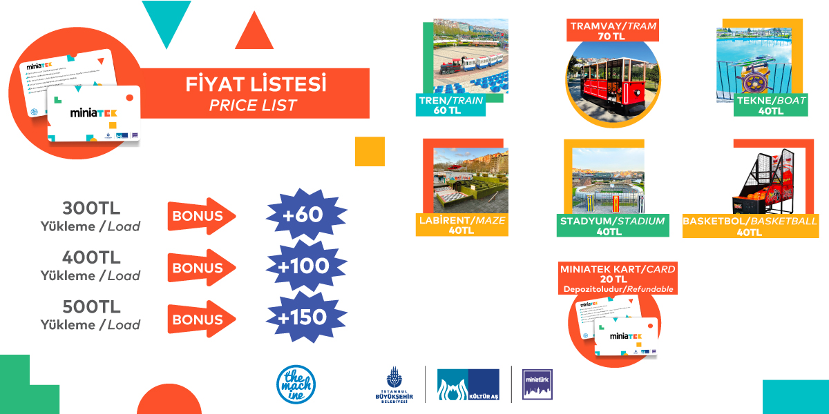 Aynı anda 20 yetişkin ve çocuğun binebildiği Miniatürk Mini Trende eğlenirken aynı zamanda müzik eşliğinde bütün alanı tanıma fırsatı bulabilirsiniz.